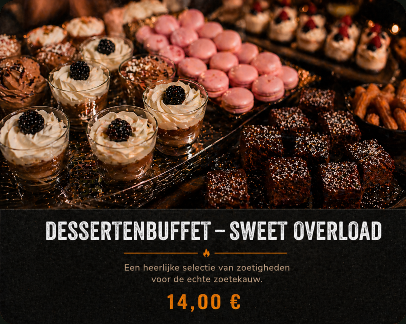 Sweet Overload is de ideale afsluiter voor elk feest, walking dinner of bedrijfsevent.